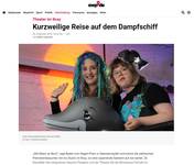 „Alle Mann an Bord“, sagt Beate vom Hagen-Prem in Seemannsplatt und nimmt die zahlreichen Premierenbesucher mit ins Studio im Roxy, wo eine spannende Szenerie auf sie wartet. 26 Darsteller des integrativen Heyoka-Theaters und der Theater-AG der Montessori-Schule im Matrosen-Look sowie sechs Musiker erobern sich die „Schiffs“-Bühne, die anfangs von einer großen Leinwand verdeckt ist. Darauf erscheinen außergewöhnliche Räume im Industriedesign und mit großen, an eine Schiffsreling erinnernden Geländern...(Elvira Lauscher, 04.12.2019, SWP.de)"