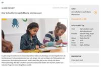 Die Wahl für die richtige Schule sollte nicht dem Zufall überlassen werden. Natürlich müssen verschiedene Kriterien und ein schlüssiges Konzept erfüllt werden. Aber dennoch ist es oftmals eine emotionale Entscheidung - Eltern müssen ein gutes Gefühl bekommen..." (Montessori-Pädagogik in Ulm und Neu-Ulm, in FRIZZ, Novemberausgabe S. 29)